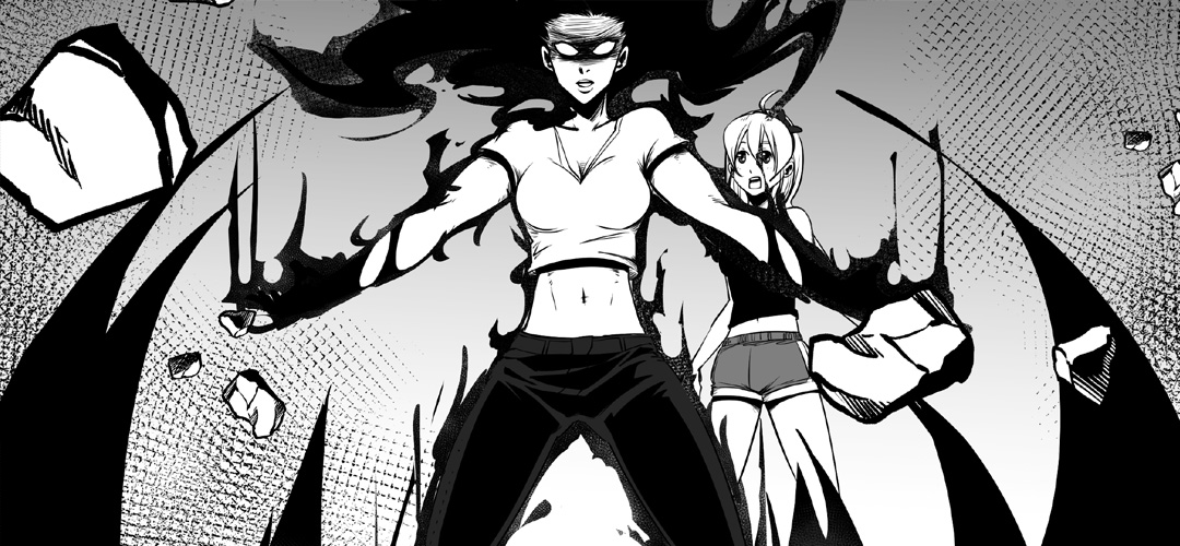 “How do you plead, Shadowmancer?” A lovingly prepared breakfast is interrupted when Summer is abducted from her apartment by a mysterious force, and her flat mate, Tammy is taken to parts unknown. Shadow’s Daughter is a supernatural, post-apocalyptic comic set in a world beset by preternatural beings and natural disasters which coincide with the rising of the demon moon. At its heart, this story is a crime/mystery narrative featuring a bounty hunter named Summer Rain who can bend shadow to her will and use it as a weapon. Rogue Bloodmancer is a stand-alone issue from Summer’s early career as a bounty hunter and shadowmancer.