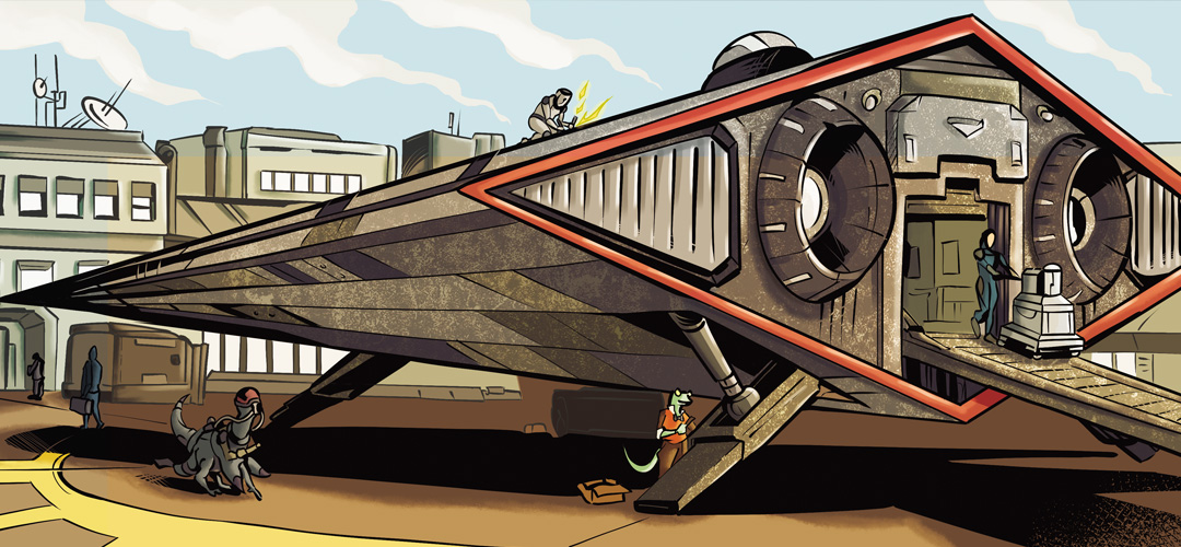 This issue also includes bonus material for the game that describes just what “riftbreaking” is and how it’s done. Also included are stats and deck plans for the S-464077-F, the trusty old Type-S scout ship featured in the story.
