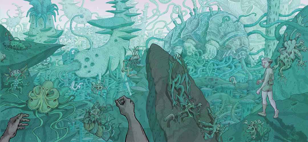 Khalek and Laura’s newly merged consciousness embarks on a journey to understand the interrelation of their respective worlds during which they find themselves attempting to communicate with the Humanoids in order to stop the disease decimating Khalek’s world. Mycelium Seep is a science fiction story that deals with questions arising from the implementation of new technology- Is it possible to curb the rise of technology when it seems to lead down a dangerous path? A critical stance is taken regarding transportation, focusing on personal motorised vehicles.