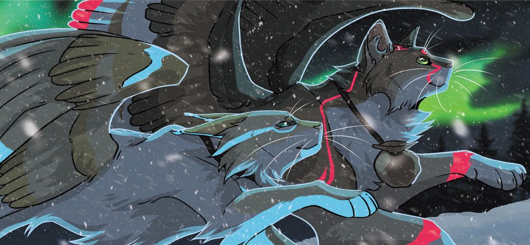 Deep in the north, a small village of cats live out their days in a clifftop village. They fish, create goods from leather and other materials, but most importantly – every night they paint the northern lights in the sky.